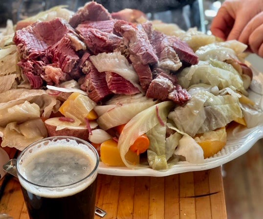 St. Patrick’s day brought a lot of corned beef, and while we got our boiled dinner from the restaurant Chez Pascal, the above was cured by Abe Dane in Providence. His wife Jan, who owns the excellent cooking store Stock Culinary Goods down the street from Chez Pascal, emailed me that Abe makes my recipe every year and how excellent it is. It’s actually …